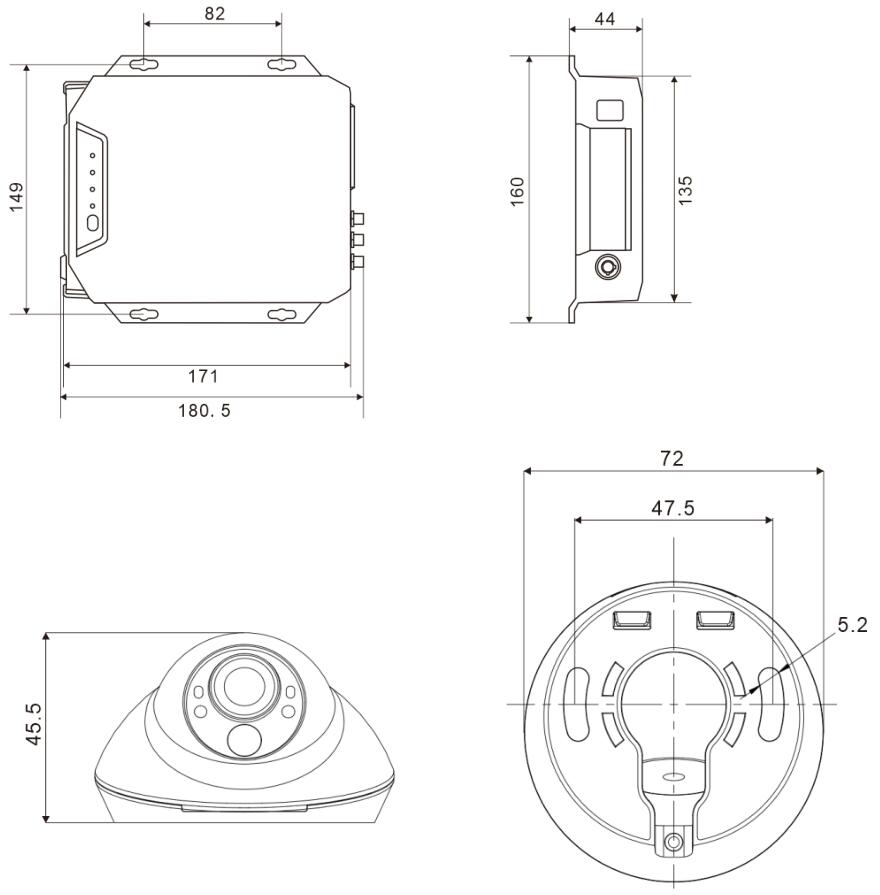 4. Dimensions of MRB HPCM588 AI Passenger Counting Camera and Data Box (Controller)