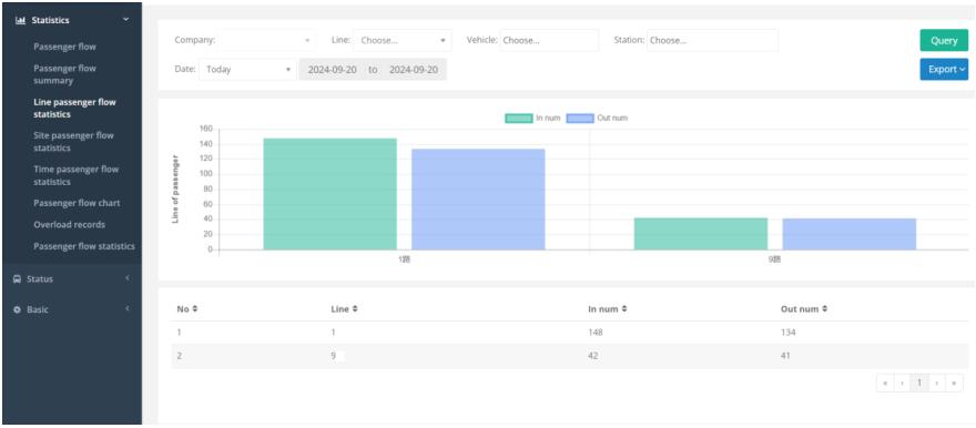 Automatically summarize and count the passenger flow data of all operating vehicles on the entire route in different time periods, obtain the detailed passenger flow distribution law of each station on the route in different time periods, and provide accurate and reliable data support for the bus company's station optimization, operation schedule adjustment and vehicle dispatching.